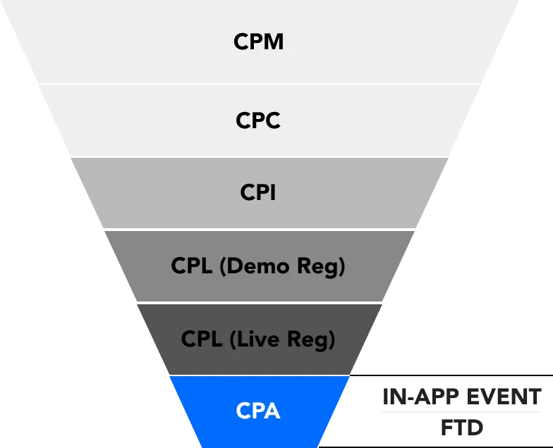 This program is designed for advertising agencies with remarkable digital marketing techniques to be paid on a cost-per-action (CPA) basis. Ad agencies with a valid AppsFlyer Agency Account can implement their digital marketing strategy to achieve specified action (In-App deposit) and get paid per action acquired.