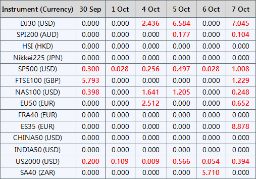 Please note that the above data are subject to changes. Please refer to MT4/MT5 for details.