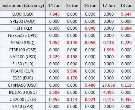 Please be advised that the dividends of the following index CFDs will be adjusted by upcoming ex-dividend dates. The comment for trading index CFDs will be in the following format “Div&<Product Name>&<Net Volume>” which show in the balance after the close of the day before the dividend payment date.