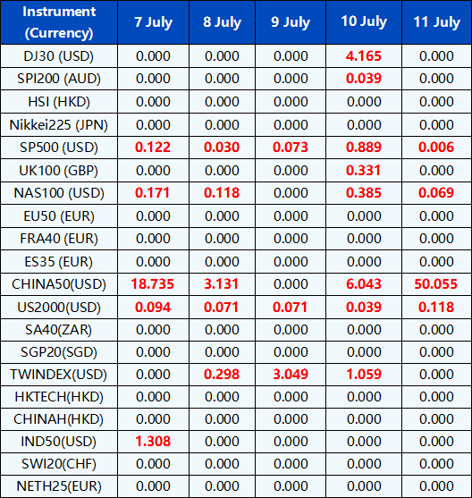 Please note the above data are subject to changes. Please refer to MT4/MT5 for details.