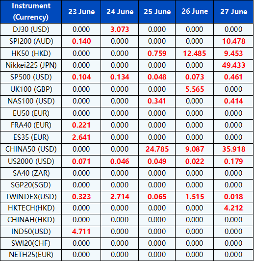 Please be advised that the dividends of the following index CFDs will be adjusted by upcoming ex-dividend dates. The comment for trading index CFDs will be in the following format “Div&<Product Name>&<Net Volume>” which show in the balance after the close of the day before the dividend payment date.