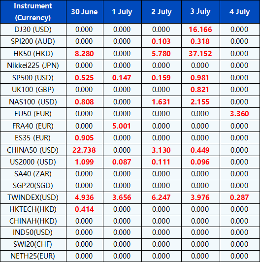 Please note the above data are subject to changes. Please refer to MT4/MT5 for details.