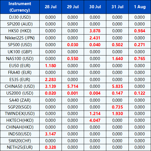 Please note the above data are subject to changes. Please refer to MT4/MT5 for details.