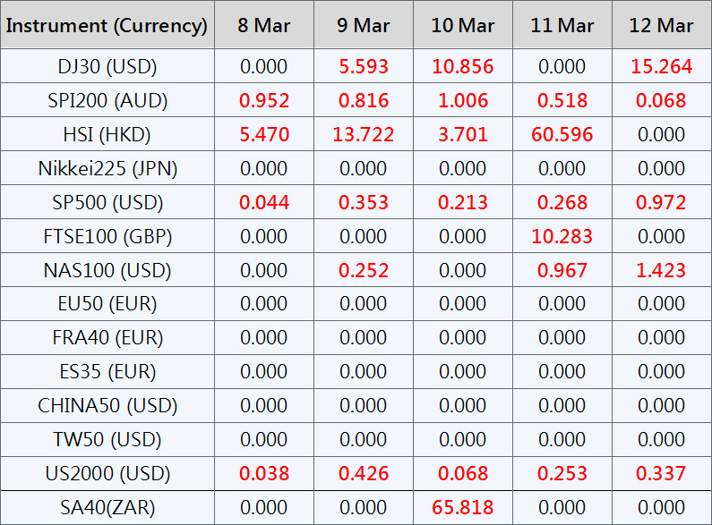 Please be advised that the dividends of the following index CFDs will be adjusted by upcoming ex-dividend dates. The comment for trading index CFDs will be in the following format “Div&<Product Name>&<Net Volume>” which show in the balance after the close of the day before the dividend payment date.