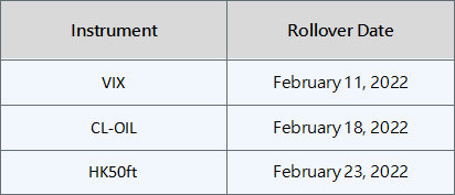 • Positions that are open on the expiration date will be adjusted via a rollover charge or credit to reflect the price difference between the expiring and new contracts.